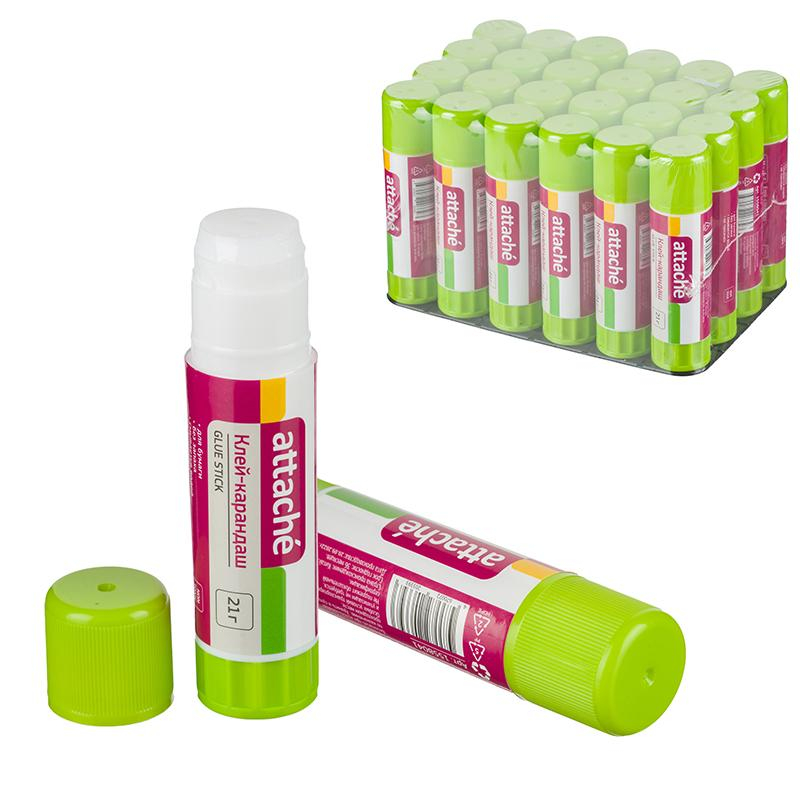 Клей-карандаш Attache предназначен для склеивания бумаги, картона. Основа клея содержит глицерин для легкого скольжения. Простой и удобный механизм, расположенный в основании стержня, позволяет легко выкрутить и закрутить столбик клея. Вес - 21 г. Форма корпуса: круглая. Не содержит цветовых пигментов (бесцветный)