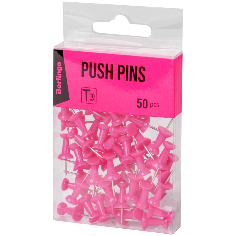 Яркие силовые кнопки Berlingo предназначены для создания отметок на картах, графиках и для крепления информации к пробковым доскам. Длина иглы 10мм. Упакованы в ПВХ коробочку с европодвесом - по 50 шт.