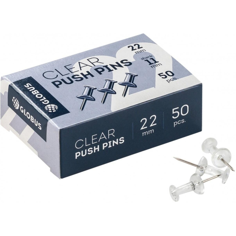 Кнопки для пробковых досок силовые Глобус КС-50П, 50 шт/уп, прозначные