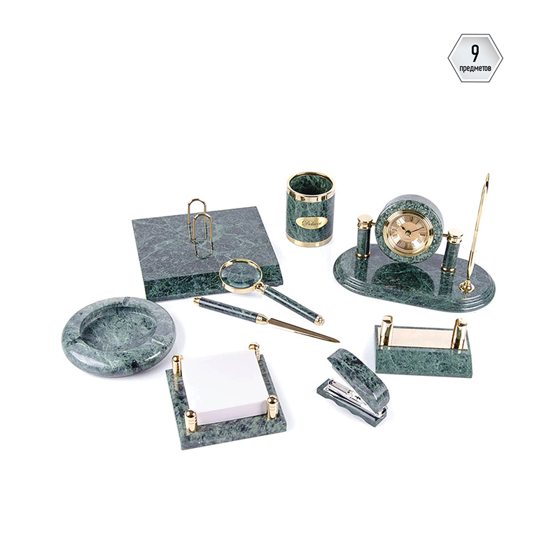 Набор настольный 9 предметов, зеленый мрамор: MBm_00004