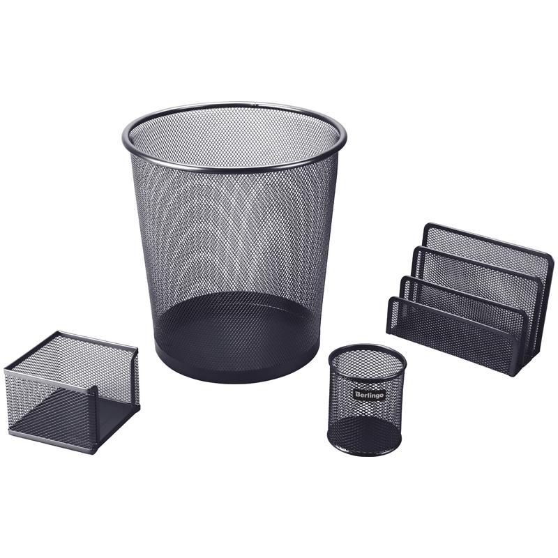 Настольный набор из металла Berlingo "Steel&Style", 4 предмета, с корзиной, черный. BMs_41412