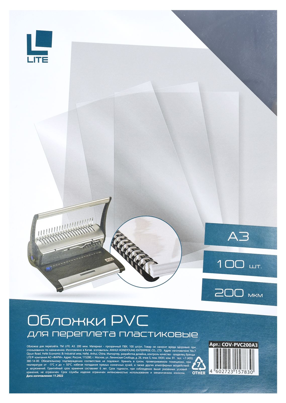 Обложка для переплета LITE А3 пластик 200 мкм прозр. 100 шт