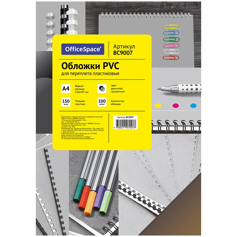 Обложка А4 OfficeSpace "PVC" 150мкм, прозрачный дымчатый пластик, 100л.: BC9007 штр.: 4680211070076