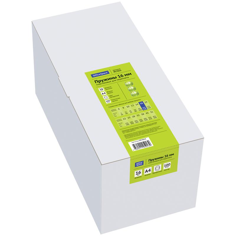 Пружины пластик D=16 мм OfficeSpace прозрачные бесцветные 100шт.: PC7013
