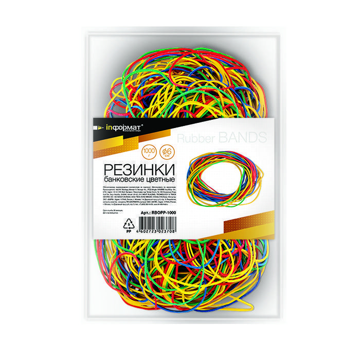 Резинка банковская inФОРМАТ ассорти 6,00 см 1 000,00 г №RBOPP-1000