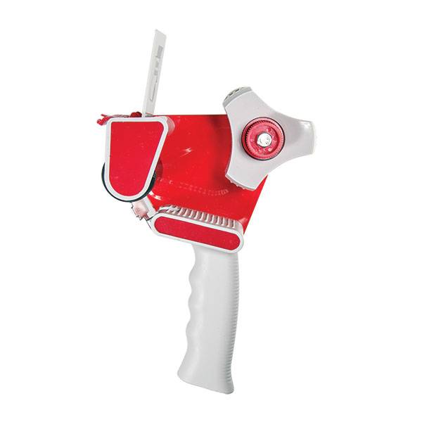 Диспенсер используется для ручной упаковки всевозможных коробок. Он подходит для упаковочной ленты, имеющей диаметр втулки 70 мм и ширину в 50 или 75 мм. Диспенсер имеет нож для легкого обрезания упаковочной ленты, а также механизм натяжения ленты и натяжной ролик.