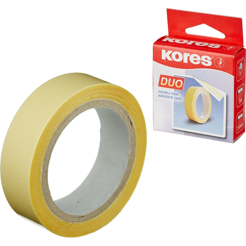 Клейкая лента канцелярская KORES двусторонняя 15х5 '55515 штр. 9023800555151
