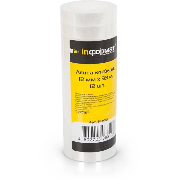 Клейк.лента канцелярская inФОРМАТ 12 мм х 33 м 12шт./уп.: S12x33 штр.: 4602723088127