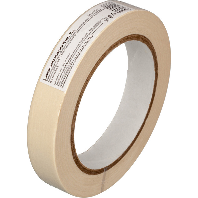 Клейкая лента малярная 19ммх50м, крепированная