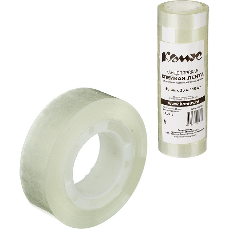 Клейкая лента канцелярская Комус 15х33, 10 шт./уп.