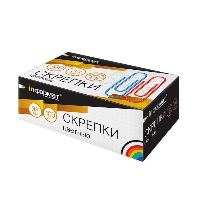 Скрепки inФОРМАТ ассорти винил 100 шт 33 мм: SC33-100K штр.: 4602723014478
