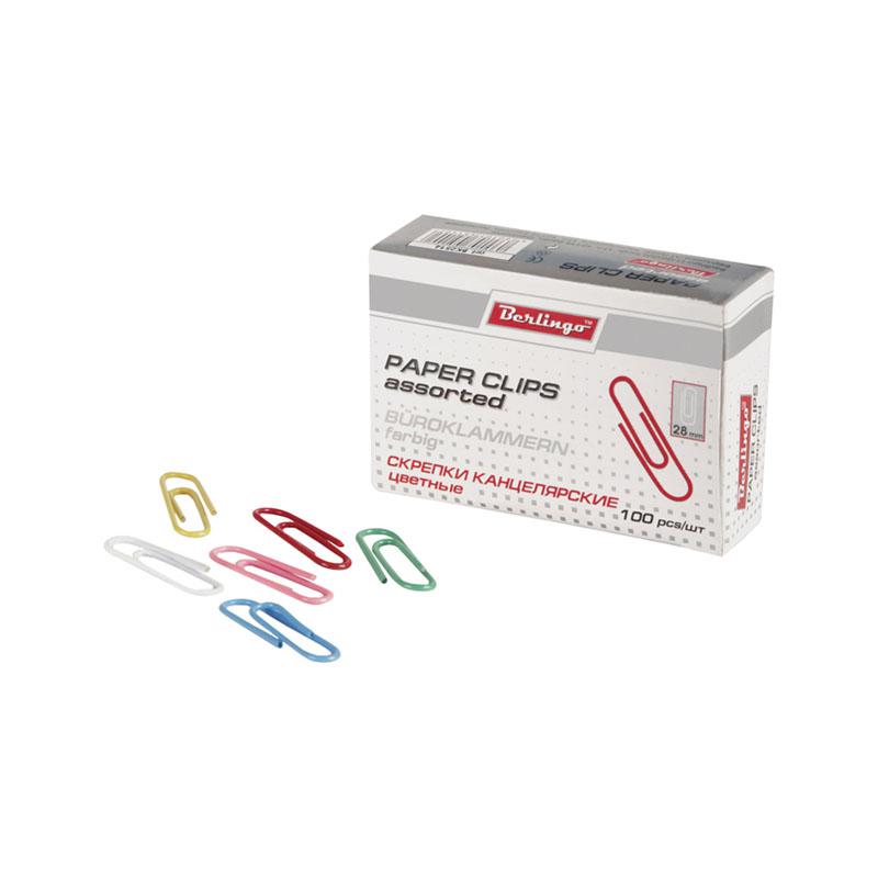 Скрепки цветные 28мм, 100шт., карт. упак.: BK2514 штр.: 4260107451402