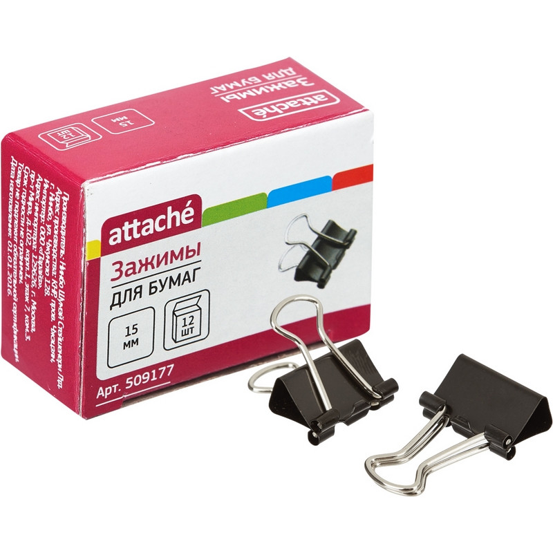 Зажим для бумаг 15мм 12шт/уп Attache, в картонной коробке 509177 штр.: 6939540589475