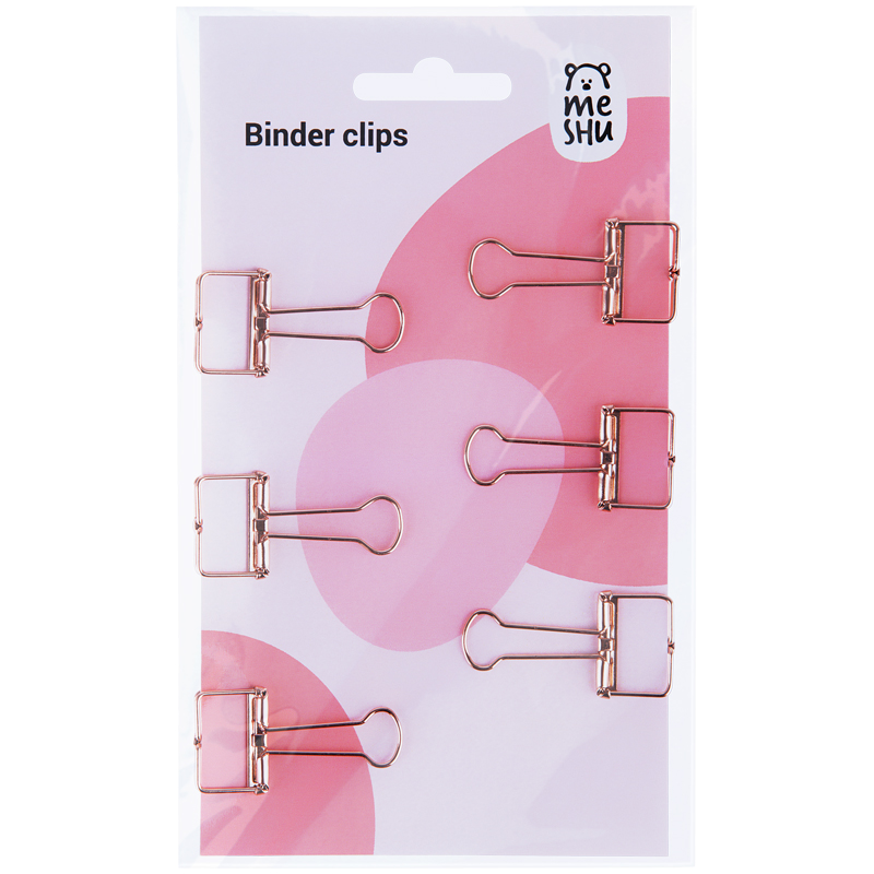 Зажимы для бумаг 19мм, Meshu "Rose Gold", 6шт., пакет с европодвесом