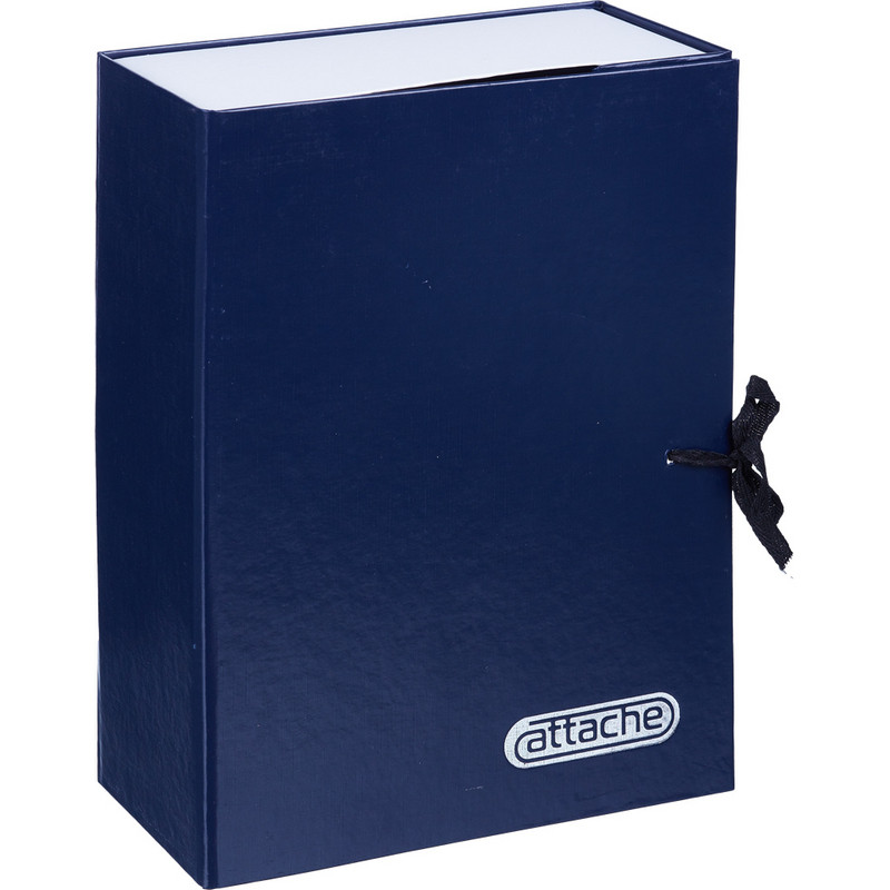 Нескладной архивный короб Attache формата А4 изготовлен из переплетного картона, снаружи покрыт бумвинилом синего цвета (материал на основе ПВХ). В закрытом виде фиксируется с помощью двух хлопчатобумажных завязок. Внутренние стойки-упоры выполнены из плотного картона. Короб вмещает до 1000 листов стандартной плотности, ширина корешка - 10 см. Позволяет надежно хранить документы как в вертикальном, так и в горизонтальном положении