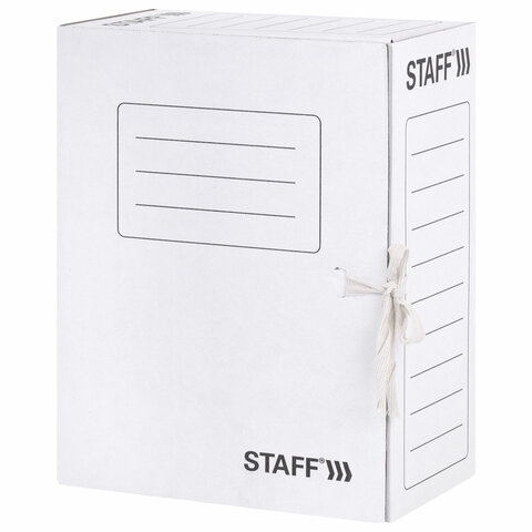 Архивная папка STAFF с завязками используется для упорядочивания и сохранности документов, бухгалтерских отчетов, и прочих ценных бумаг. Предназначена для документов формата А4 и вмещает до 1400 листов. Высота папки составляет 325 мм, ширина - 250 мм, а ширина корешка - 150 мм. Имеет повышенную прочность за счет использования качественного микрогофрокартона. Спокойный белый цвет архивной папки не будет отвлекать от рабочего процесса.