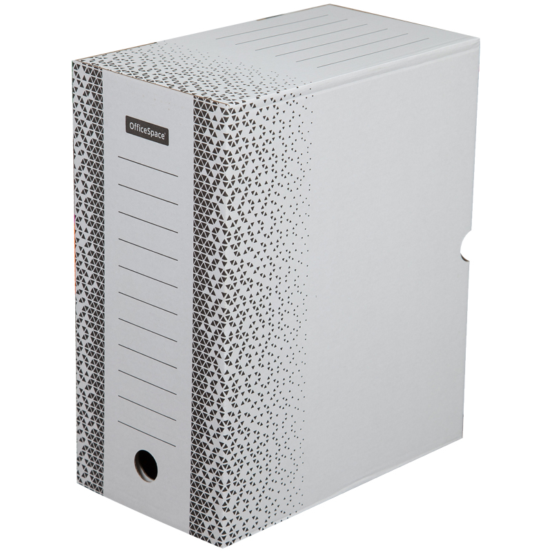 Короб архивный OfficeSpace "Standard" изготовлен из микрогофрокартона белого цвета ( дизайн черного цвета). Удобен для краткосрочного хранения документации, а так же длительного архивного хранения. Прочная конструкция и стандартизованный размер позволяют хранить документы вертикально и горизонтально на стеллажах или в архивных коробах. Легкая сборка. На лицевой и всех боковых гранях имеются поля для маркировки. Поставляется в разобранном виде. Имеют повышенную прочность за счет использования более качественного плотного микрогофрокартона.