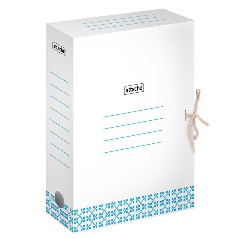 Короб архивный Attache 75мм на завязках голубой с узорами