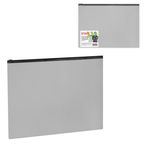Папка-конверт на молнии STAFF идеально подойдет для хранения и транспортировки документов. Изготовлена из непрозрачного серого пластика с фактурной поверхностью толщиной 0,23 мм. Формат – А4 (230х333 мм). Герметичная застежка-зиплок защищает документы от механических повреждений, а также от пыли и влаги. Непрозрачный материал обеспечивает надежную защиту содержимого папки от посторонних глаз. Цвет молнии – черный.