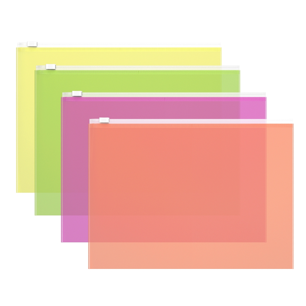 ZIP-пакет формата B5 из высококачественного полупрозрачного пластика с текстурой поверхности "апельсиновая корка", на которой не видно отпечатков пальцев и мелких царапин . Предназначен для хранения и транспортировки небольшого количества документов. Цвет ZIP-пакета – ассорти: желтый, зеленый, оранжевый, розовый. Удобная ZIP-молния обеспечивает быстрый доступ к бумагам, оснащен карманом для визитной карточки. ZIP-пакет вмещает до 100 бумажных листов. Размер ZIP-пакета - 289х214мм, толщина материала - 0.14мм. Поставляется в различных вариантах цвета/дизайна без возможности выбора.