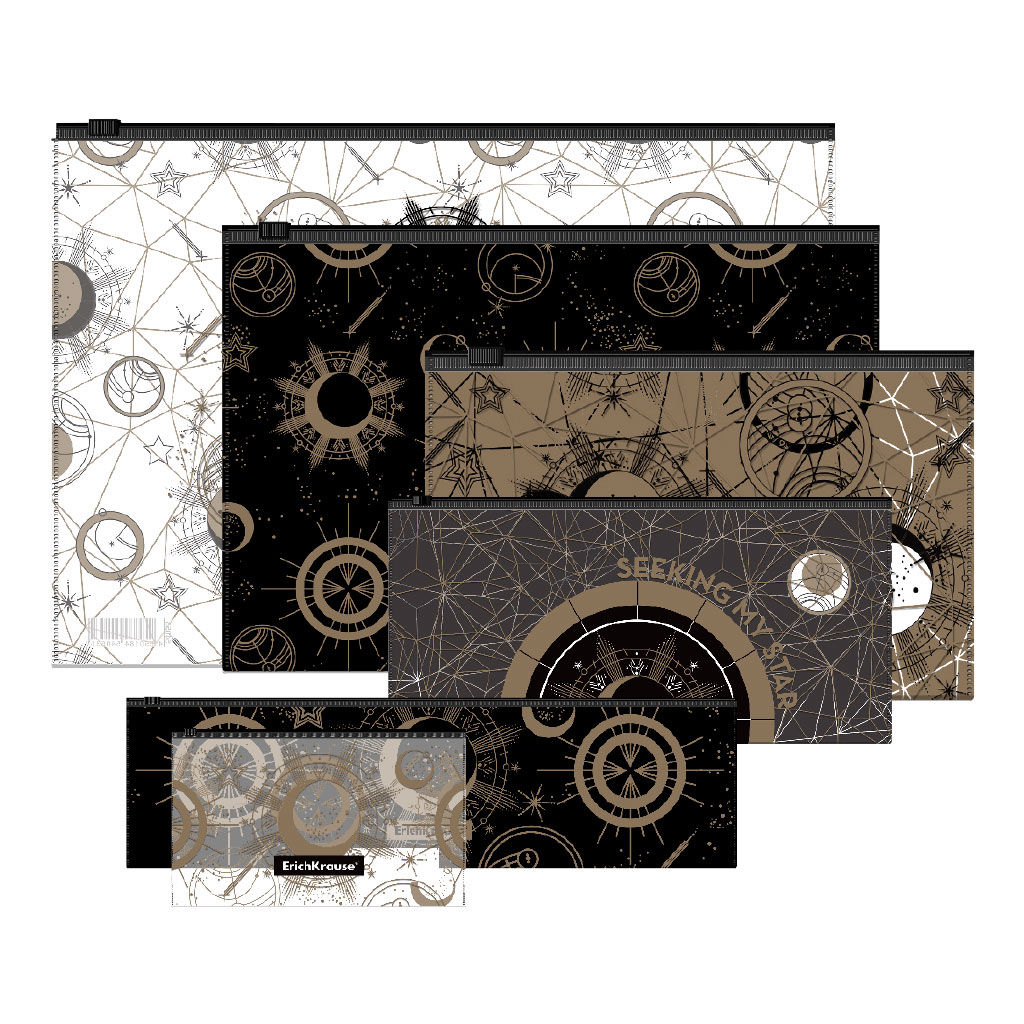 Набор из 6 zip-пакетов пластиковых ErichKrause® Magic Sky, ассорти (A4, B5, C6, Travel, 230x70mm, Card Size)