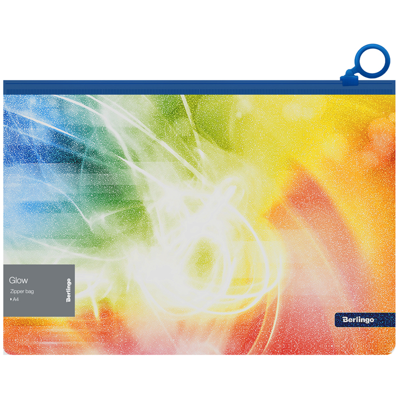 Папка-конверт на молнии Berlingo "Glow", 180мкм, с рисунком, с эффектом блесток