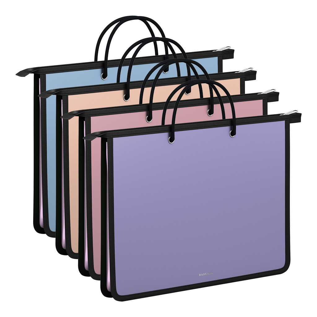 Папка на верхней молнии пластиковая ErichKrause Matt Manga, с ручками, A4, ассорти (в пакете по 4 штуки)