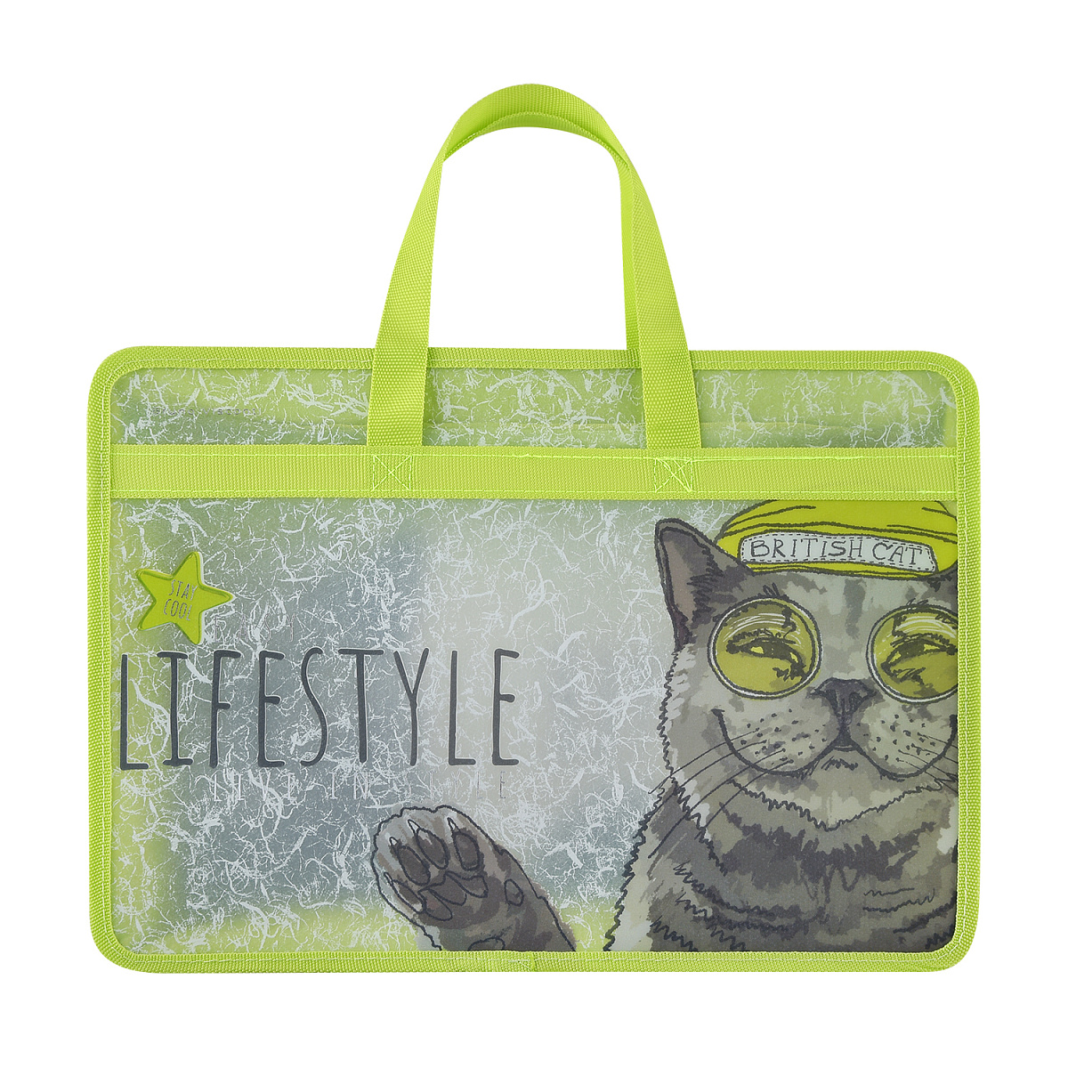 Папка-портфель на молнии формата А4 для хранения, транспортировки школьных принадлежностей, различного типа документов. Папка изготовлена из полупрозрачного полимерного материала толщиной 0,4 мм. Папка привлекает к себе внимание благодаря авторскому дизайну, фольгированным элементам, контрастному текстильному канту по периметру и широким ручкам.