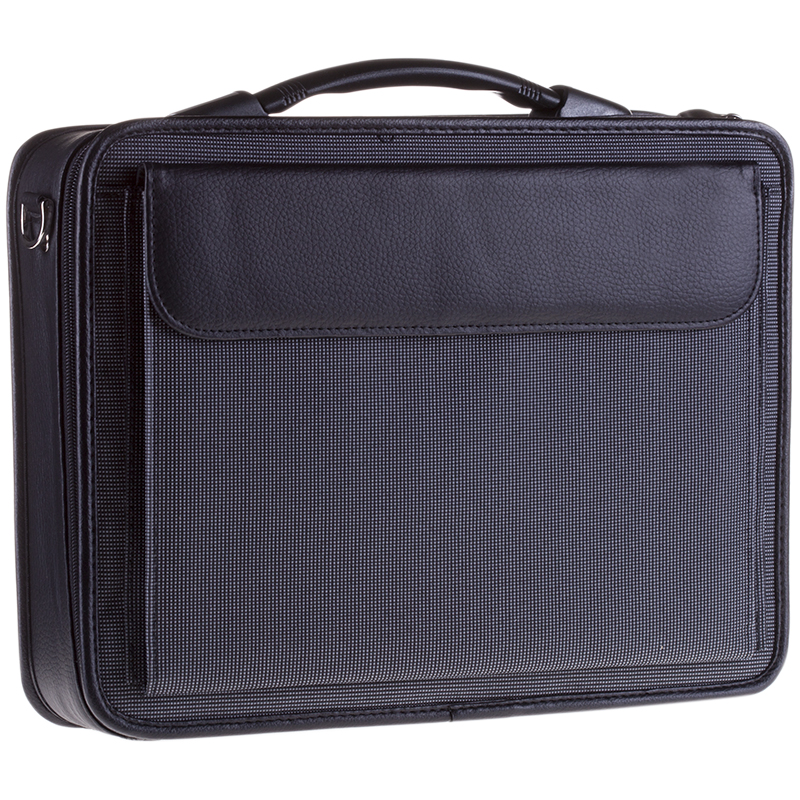 Портфель "Fortuna" комбинир. кожзам/полиэстер: ПоКЗ_588 Деловой портфель из искусственной кожи. Внешний карман на клапане, плечевой ремень. Закрывается на молнию. Пластиковая ручка. Внутри три отделения для хранения документов формата А4. Размер 360х270х80мм.