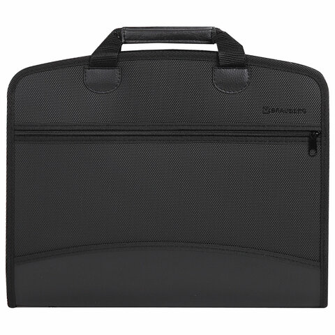 Портфель-сумка пластиковый BRAUBERG, А4+, 375х305х60 мм, на молнии, бизнес-класс, 4 отделения, 2 кармана, черный, 225169