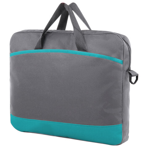 Сумка для документов STAFF "Manager" на молнии с карманом, полиэстер, серо-бирюзовая, 37х32х5 см, 270837