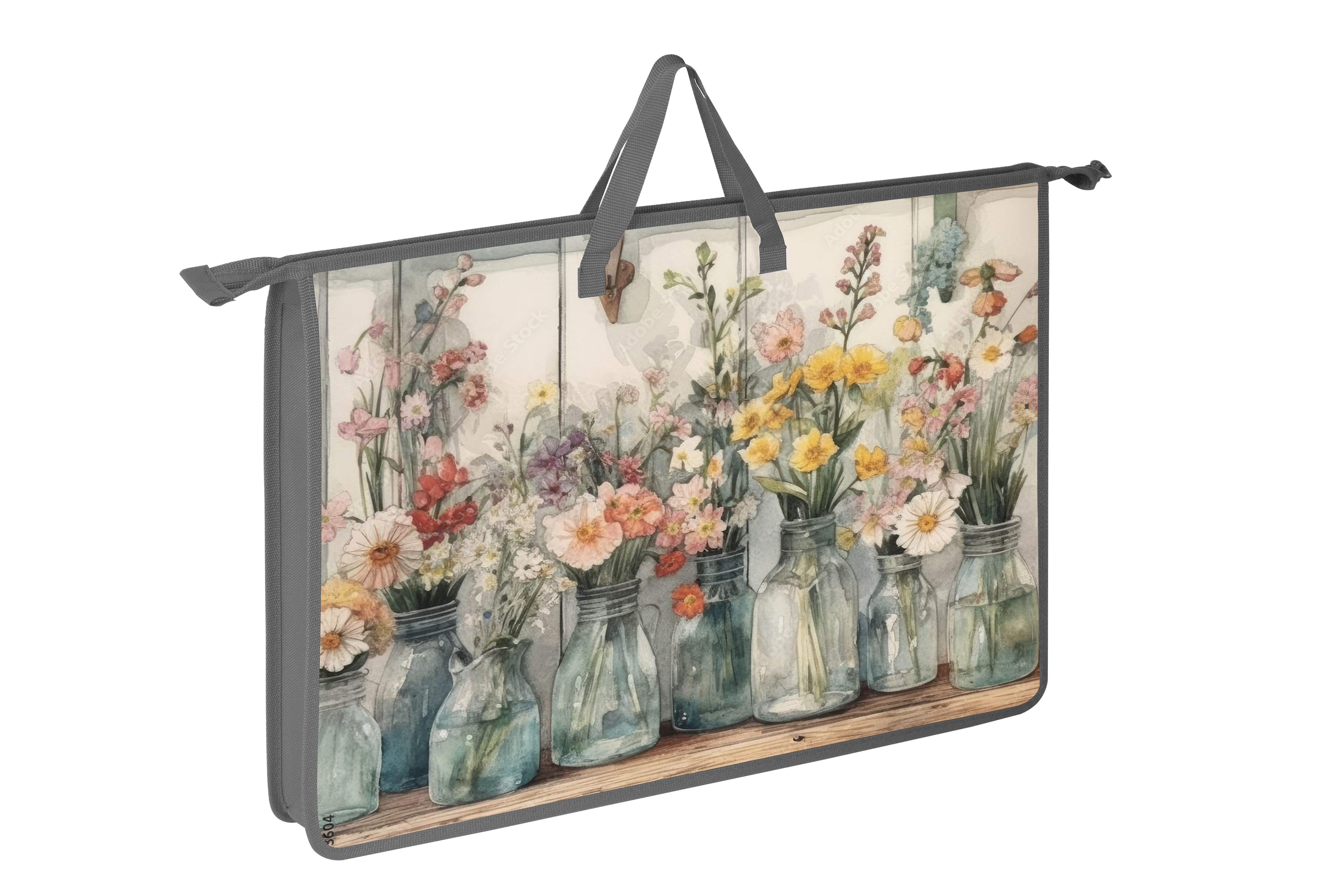Папка для труда с ручкой А3 АРТформат АКВАРЕЛЬНЫЕ ЦВЕТЫ пластик, полиэстер 466х335х50 мм разноцвет. для девочек