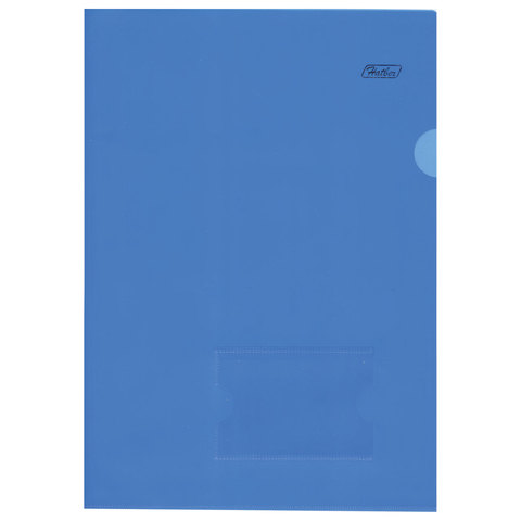 Папка-уголок с карманом для визитки, А4, синяя, 0,18 мм, AGкм4 00102, V246955