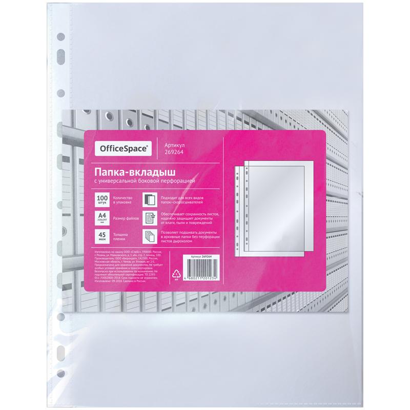 Папка-вкладыш с перфорацией OfficeSpace, А4, 45мкм, глянцевая. 269264