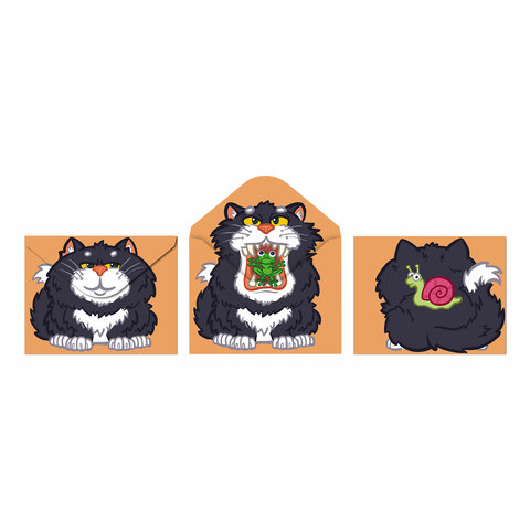 Папка-конверт с двухсторонней печатью и кнопкой "Кот с лягушкой", А4, 180 мкм, CNT, 75702