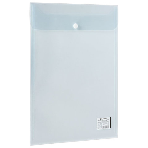 Папка-конверт с кнопкой BRAUBERG, вертикальная, А4, до 100 листов, прозрачная, 0,15 мм, 224978