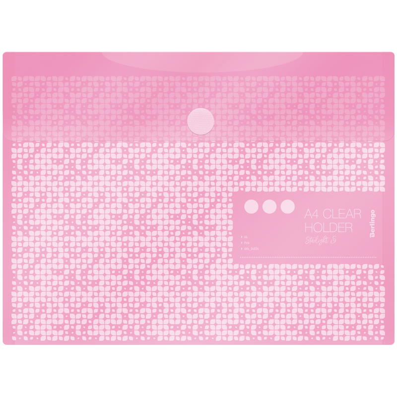 Папка-конверт на липучке Berlingo "Starlight S", А4, 180мкм, пастель, розовая