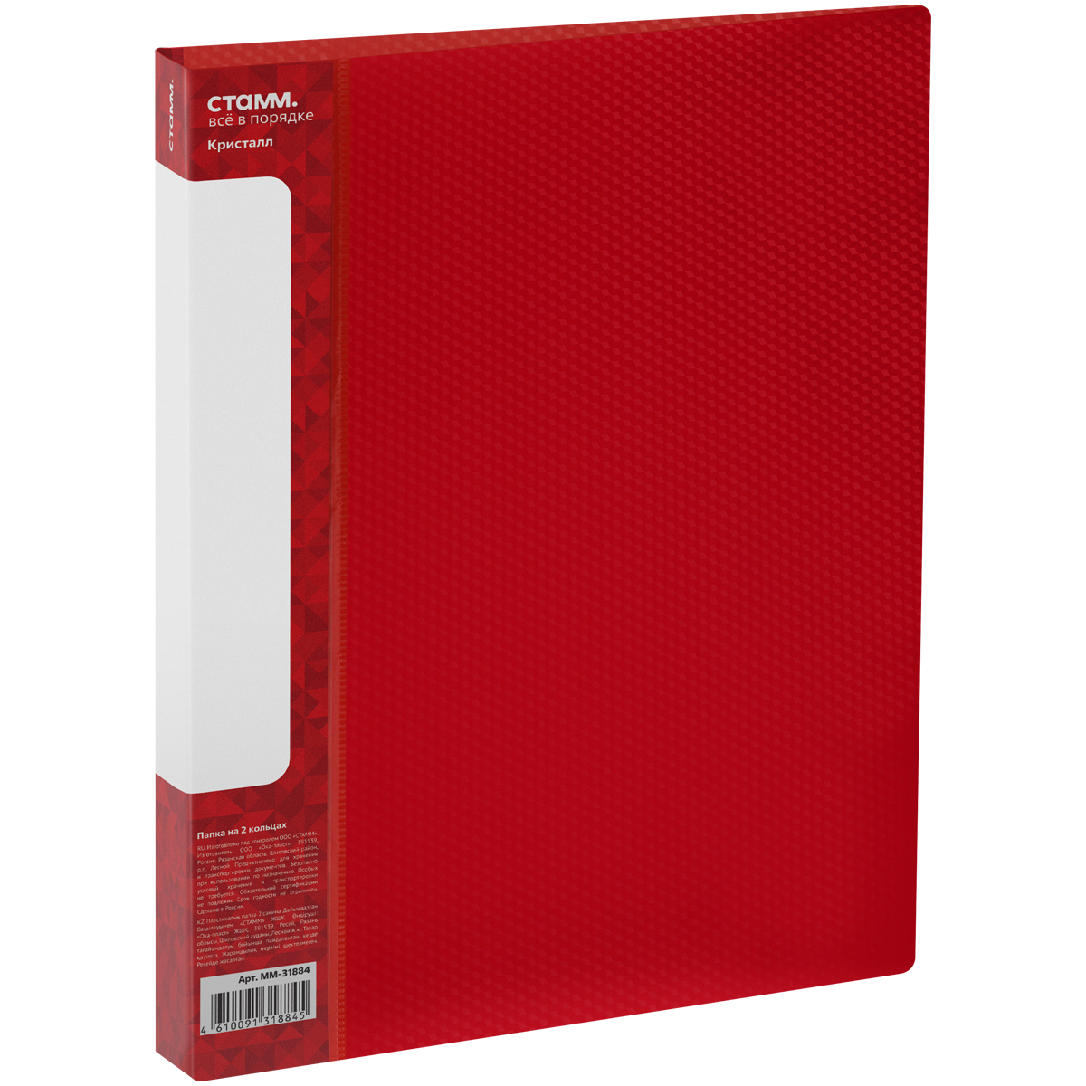 Папка на 2 кольцах СТАММ "Кристалл" А4, 40мм, 700мкм, пластик, красная
