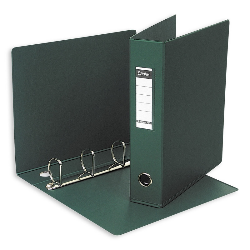 Папка на четырех кольцах Bantex изготовлена из плотного картона, с внешней и внутренней стороны обтянута ПВХ-пленкой зеленого цвета. Формат А4. По нижнему краю окантована дополнительным слоем пленки по запатентованной технологии Strong Line, предотвращающей царапины на мебели. Папка снабжена механизмом на четырех кольцах D-типа из особо прочной стали. Диаметр кольца - 50 мм. Корешок шириной 60 мм имеет пластиковый карман со сменной двусторонней этикеткой и кольцо для удобства захвата. Папка вмещает до 350 листов стандартной плотности.