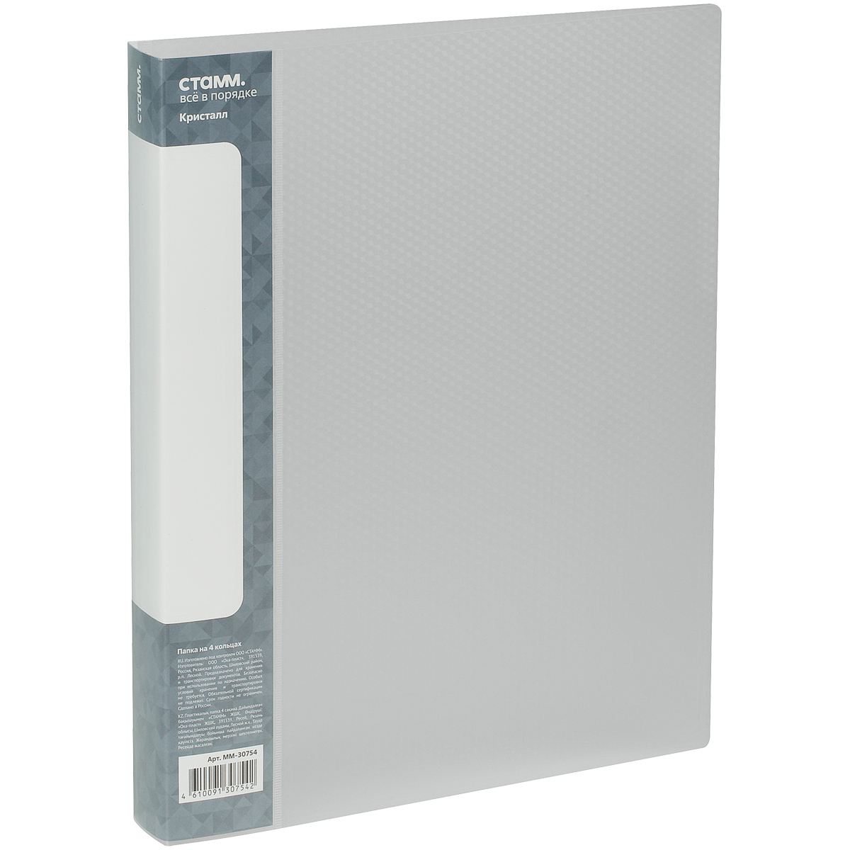 Папка на 4 кольцах СТАММ "Кристалл" А4, 40мм, 700мкм, пластик, бесцветная