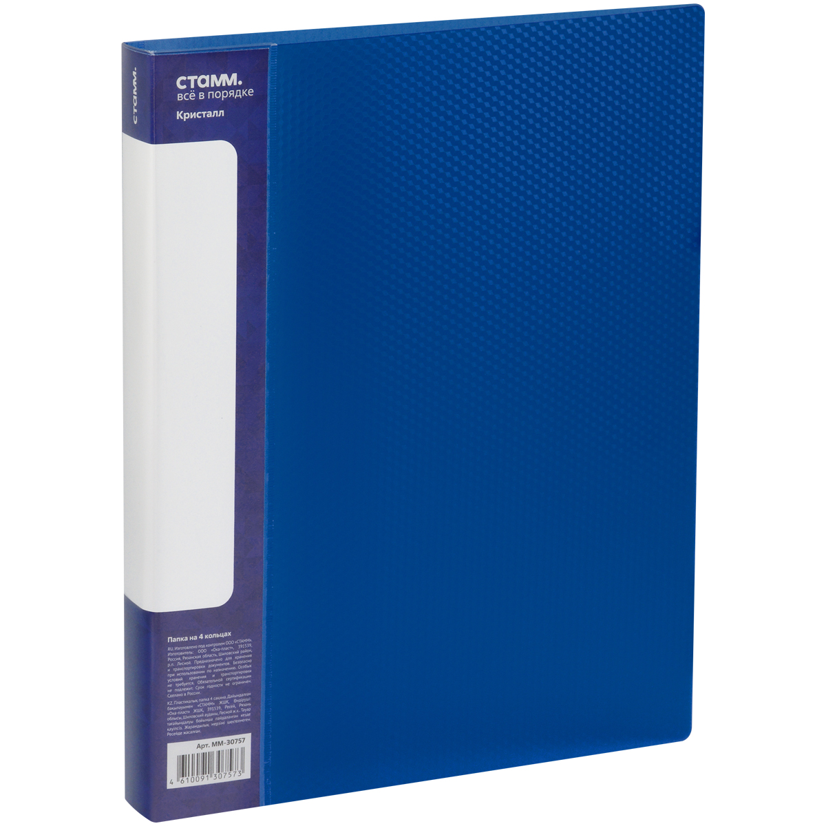 Папка на 4 кольцах СТАММ "Кристалл" А4, 40мм, 700мкм, пластик, синяя