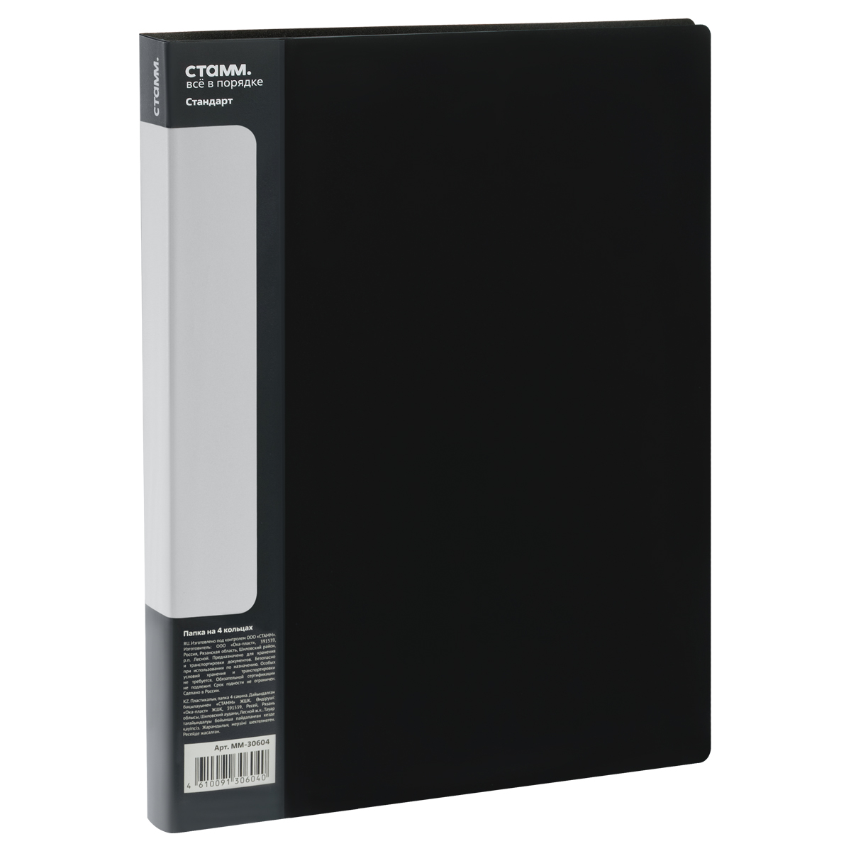Папка на 4 кольцах СТАММ "Стандарт" А4, 25мм, 700мкм, пластик, черная