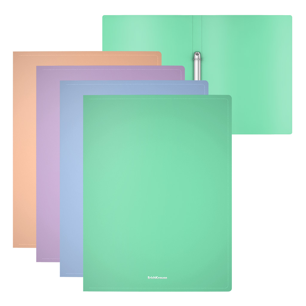 Папка на 2 кольцах пластиковая Erich Krause Matt Pastel Bloom, 24мм, A4, ассорти (в пакете по 4 штуки)