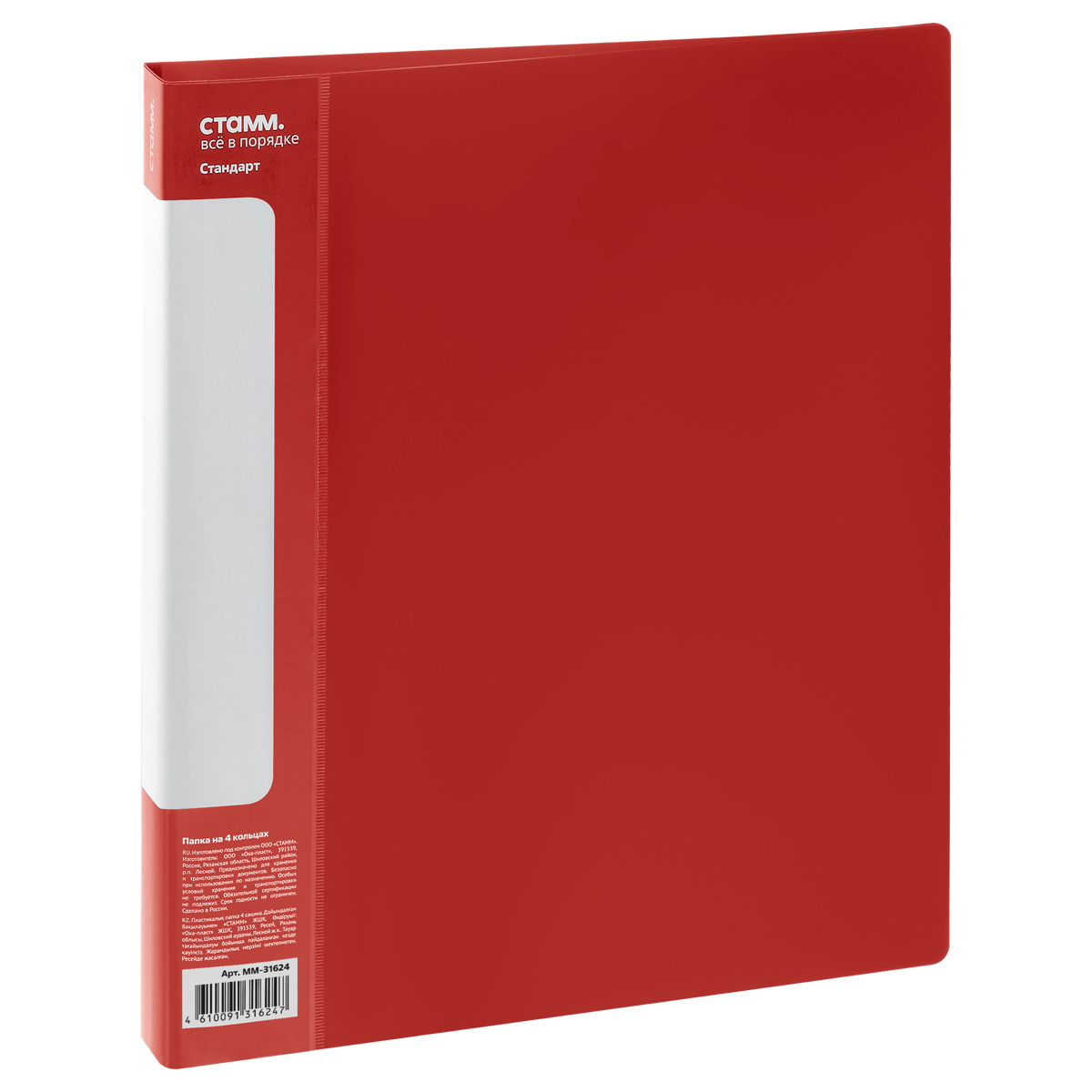 Папка на 4 кольцах СТАММ "Стандарт" А4, 40мм, 700мкм, пластик, красная