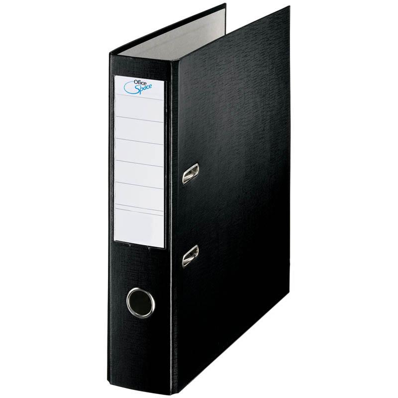 Пaпкa-регистратор OfficeSpace® 70мм, бумвинил, с карманом на корешке, черная: AFbv70-5-732 / 2521016 Папка-регистратор для хранения документов, металлический арочный механизм, покрытие бумвинил, карман на корешке папки. Формат А4+. Ширина корешка 70 мм. Цвет черный.