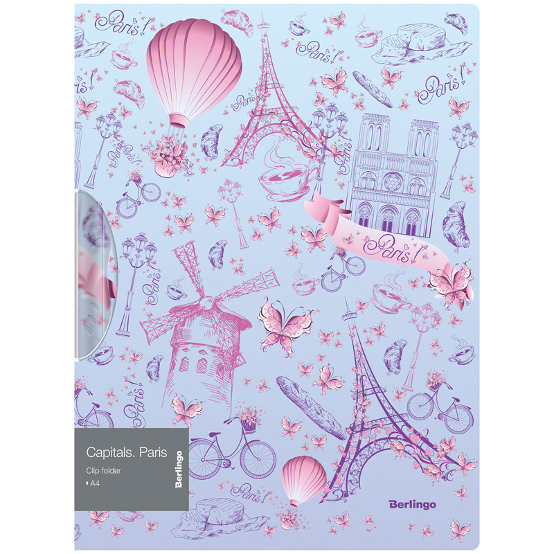 Папка с пластиковым клипом Berlingo "Capitals. Paris" А4, 450 мкм, с рисунком