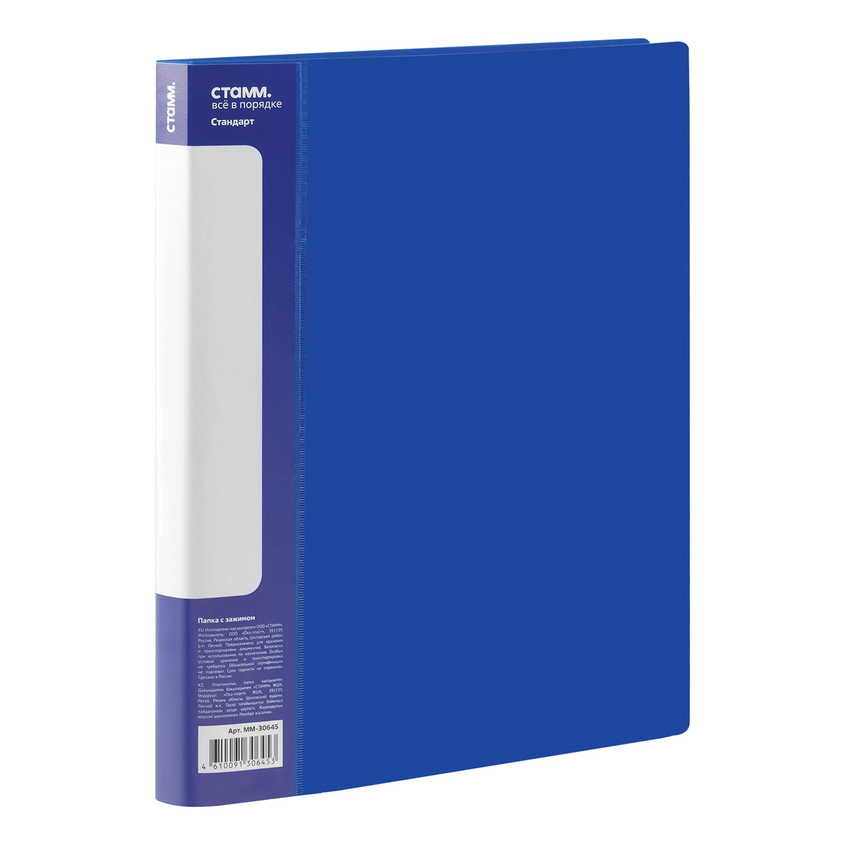 Папка с боковым зажимом СТАММ "Стандарт" А4, 17мм, 700мкм, пластик, синяя