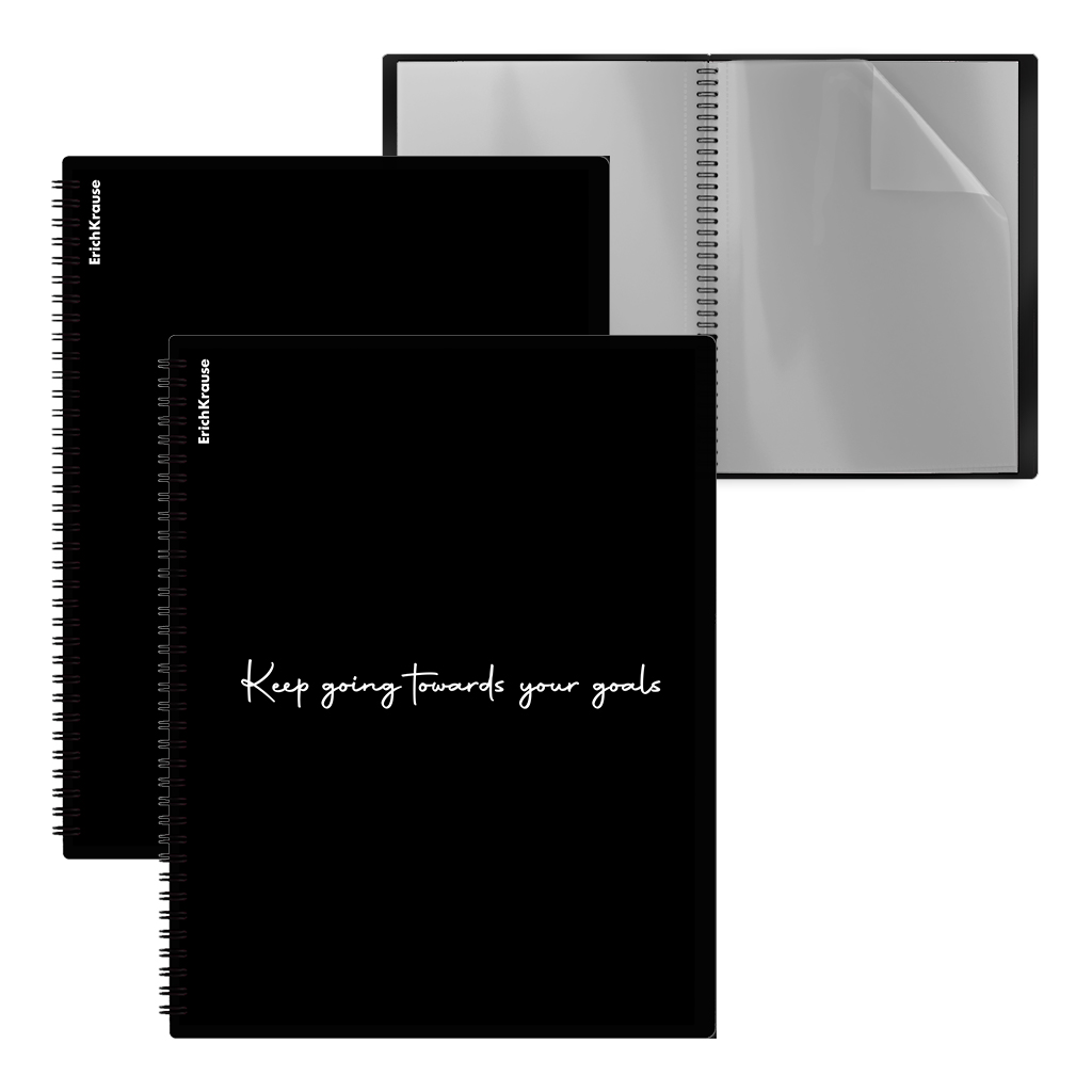 Папка файловая пластиковая на спирали ErichKrause Classic Words, с 20 прозрачными карманами, A4, черный, ассорти (в пакете по 4 штуки)