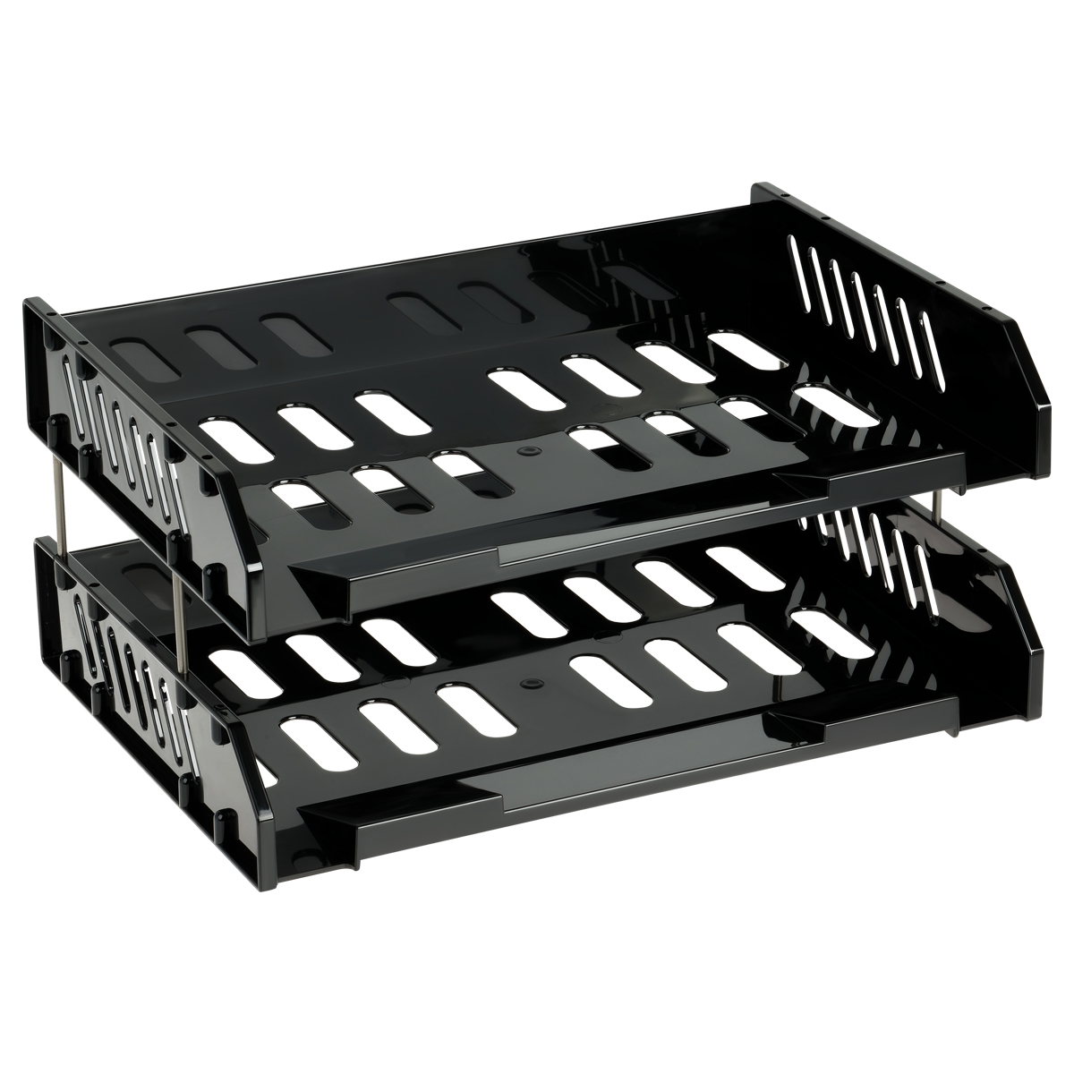 Лоток для бумаг горизонтальный СТАММ "Сити", набор 2шт., на мет. стержнях, широкая загрузка, черный