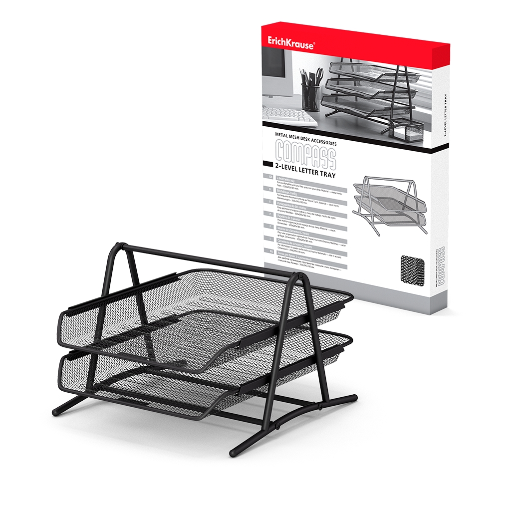 Лоток металлический для бумаг 2-х уровневый Erich Krause Compass, черный